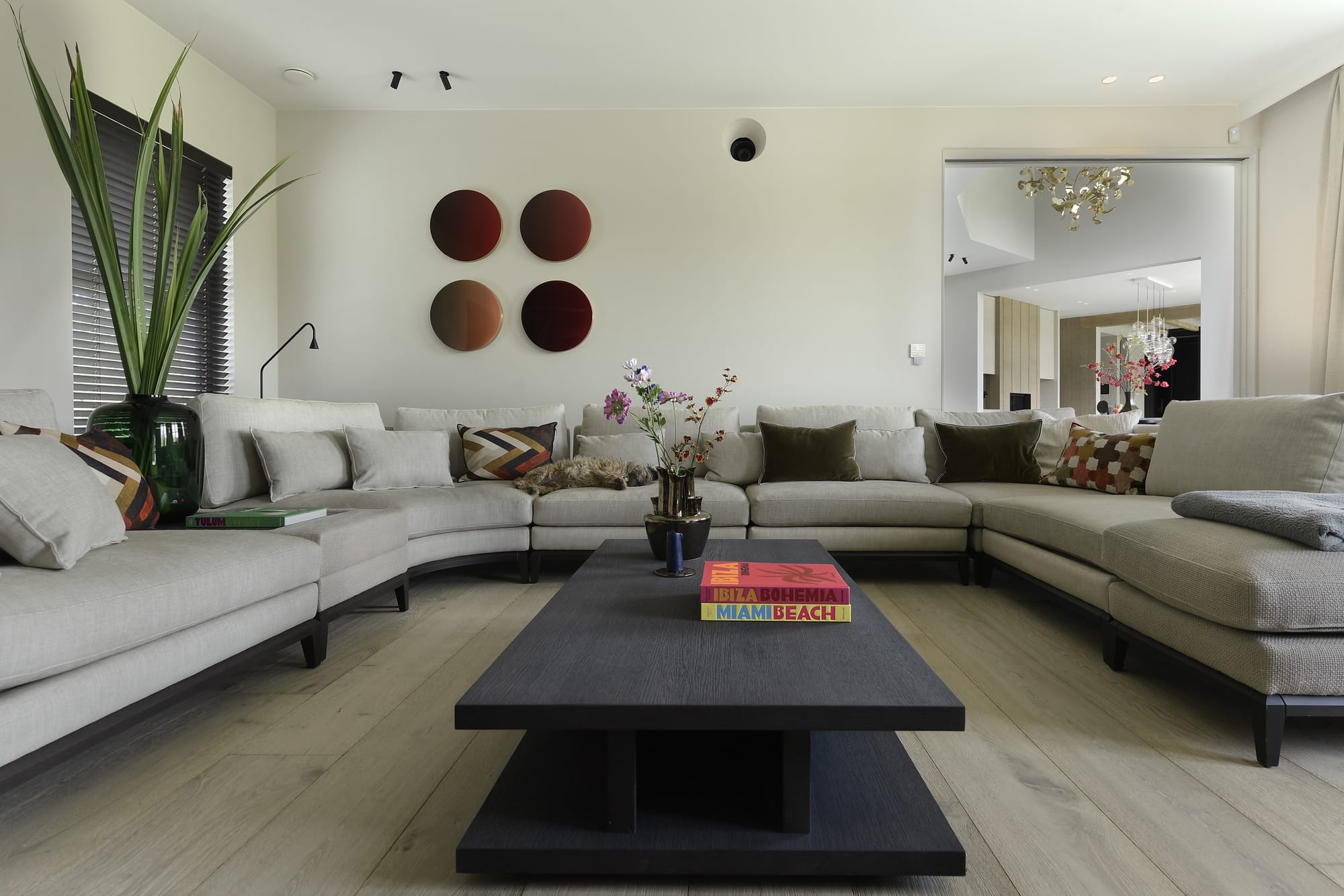 We werkten een homecinema uit in de leefkamer. Het projectiescherm werd volledig op maat en naadloos ingewerkt in het TV-meubel. Zo is het projectiescherm geen storend element en is dit weggewerkt tot wanneer de klant wilt genieten van een high-end cinema ervaring.